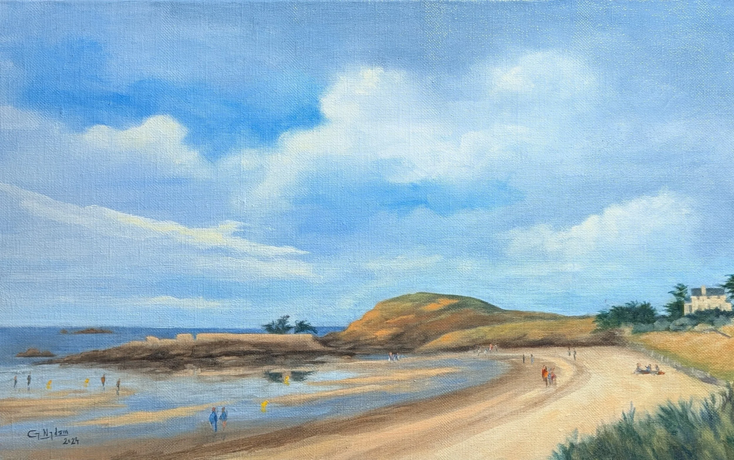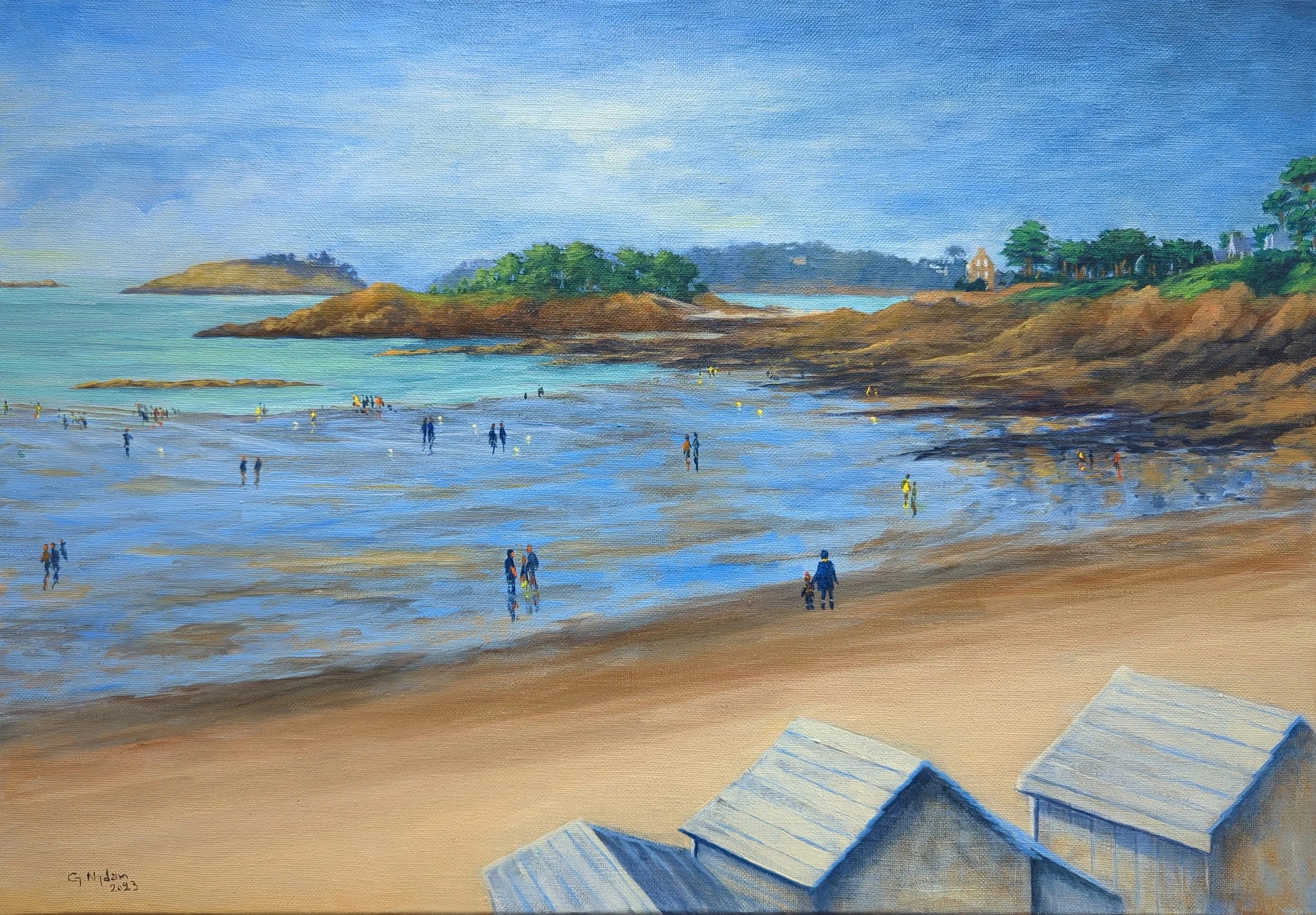 La plage de l'Ecluse de Dinard - Huile sur toile - 55x46cm