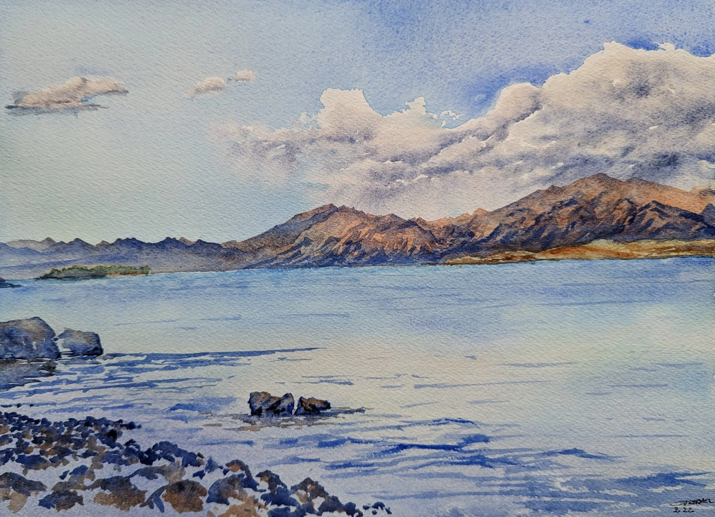 Entre mer et montagne, Nouvelle Zélande - Aquarelle - 23x31cm