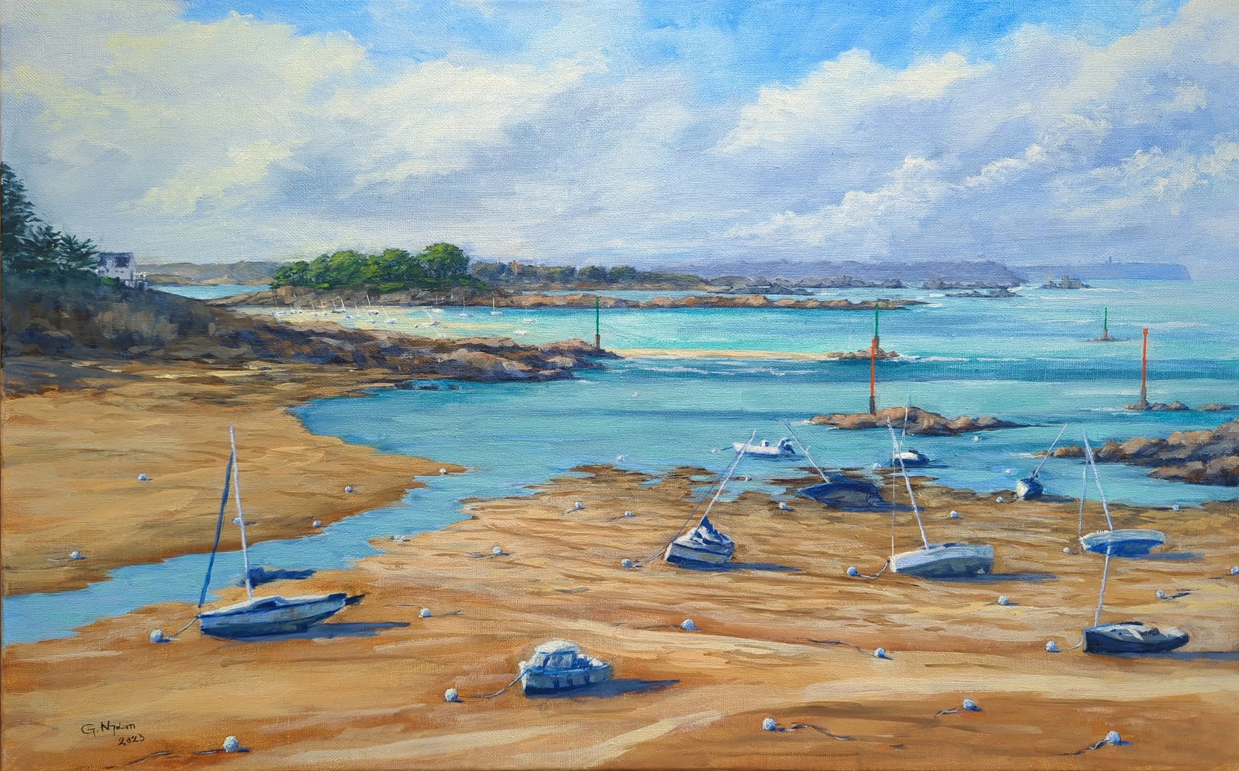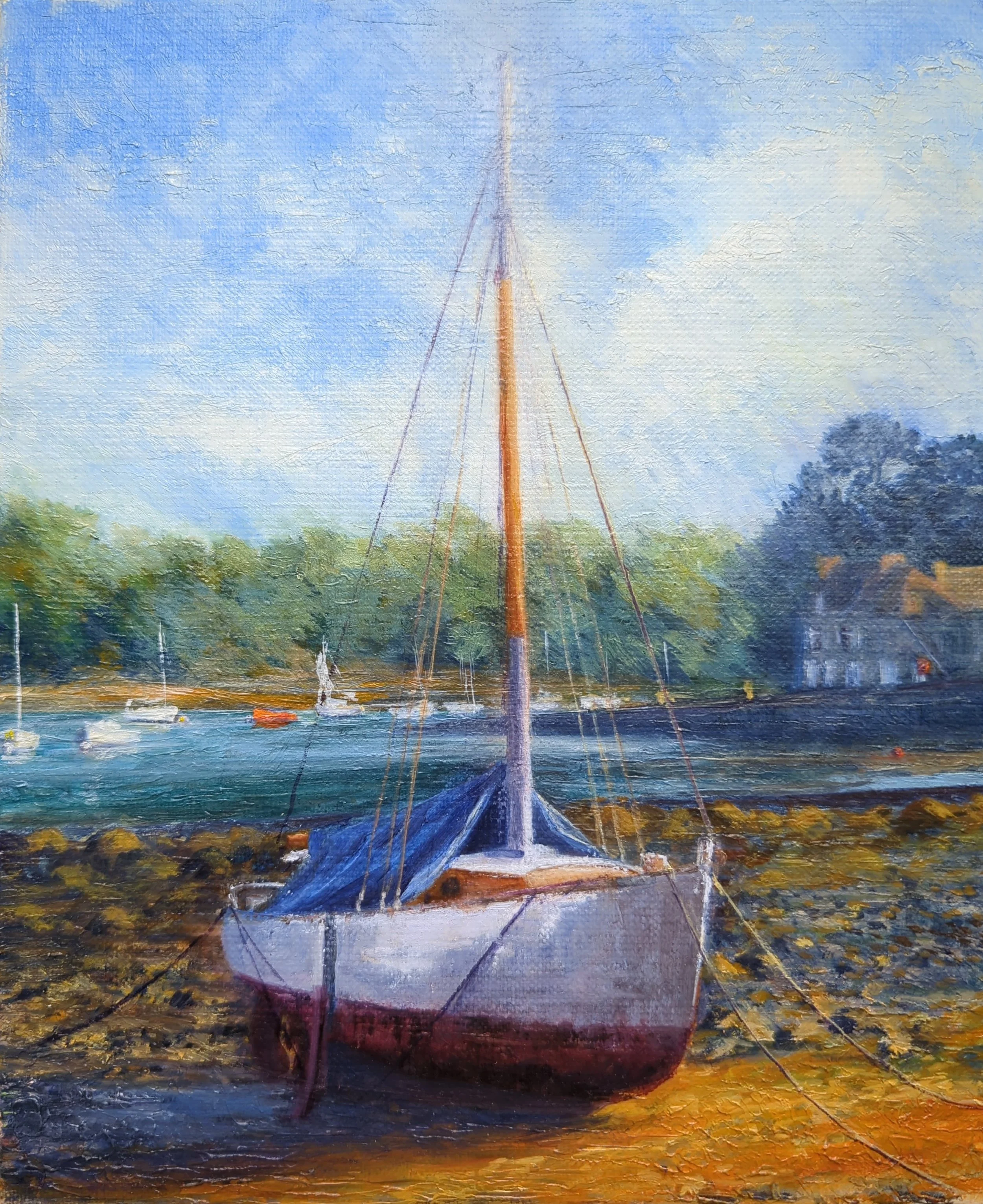 Bateaux à l’échouage au Béchet, Saint-Briac - Huile sur toile - 38x55cm