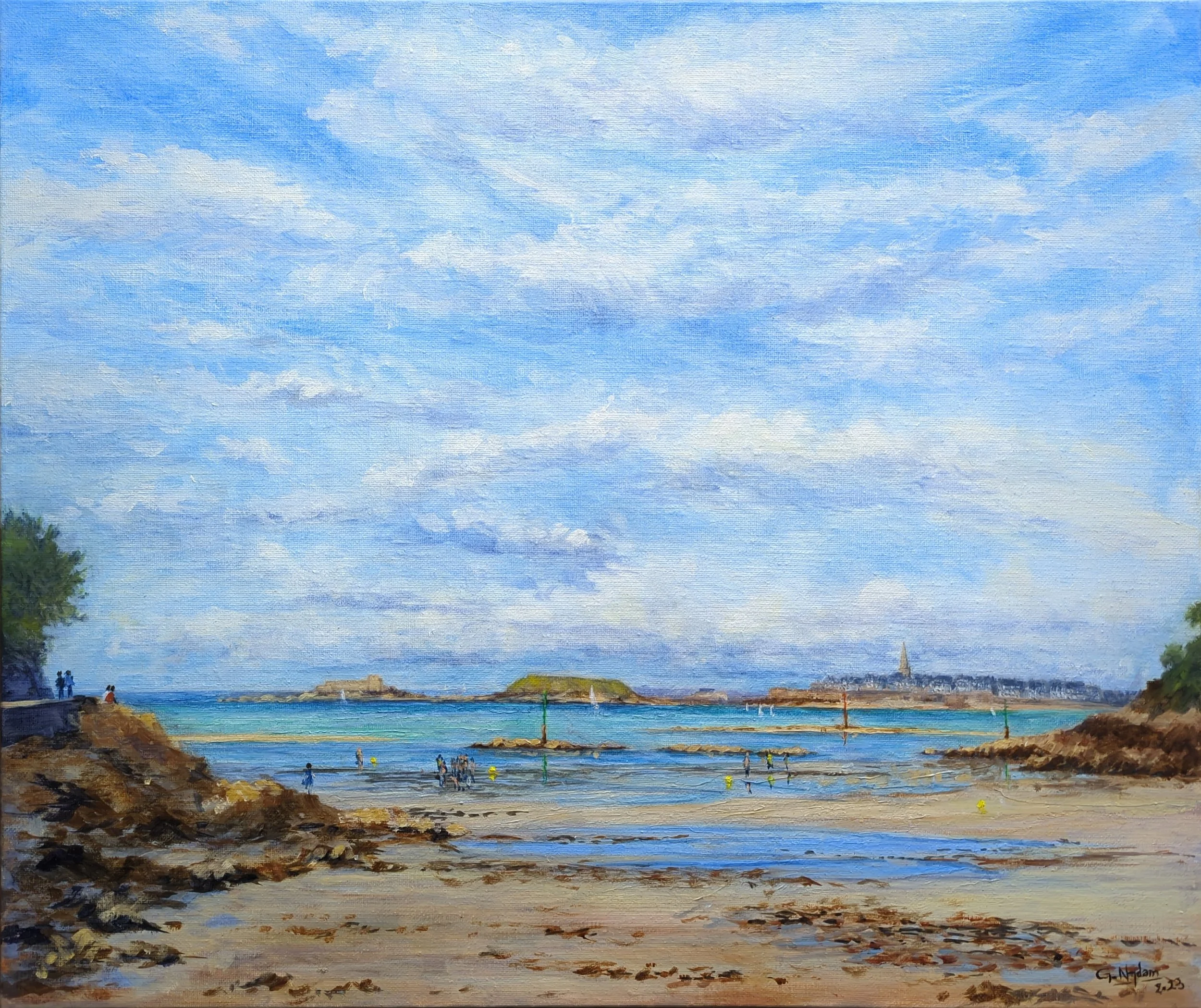 La plage de la Briantais- Huile sur toile - 61x46cm