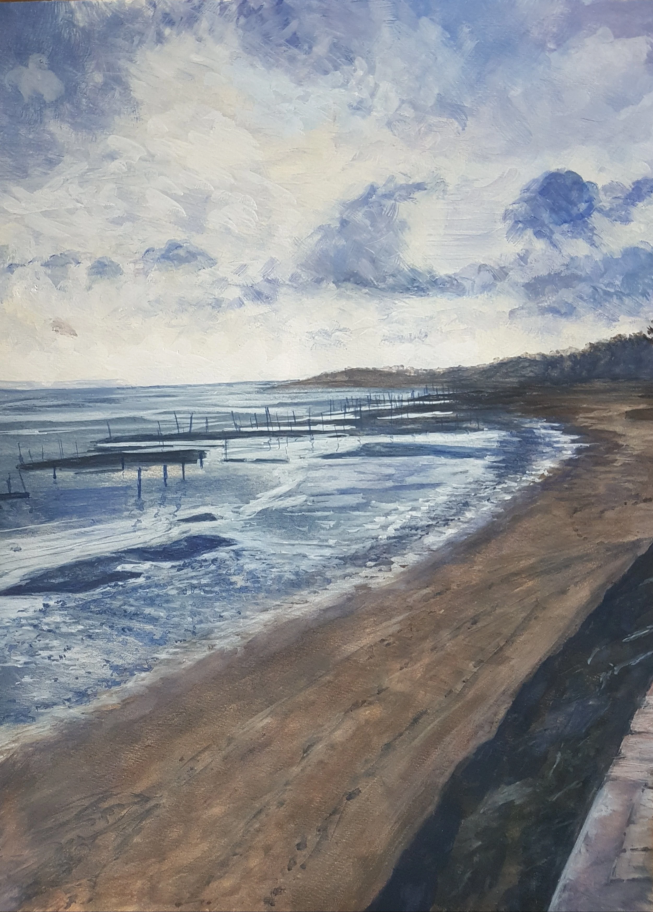 Grande marée à la plage de Saint-Sieu - Huile sur toile - 55x38cm